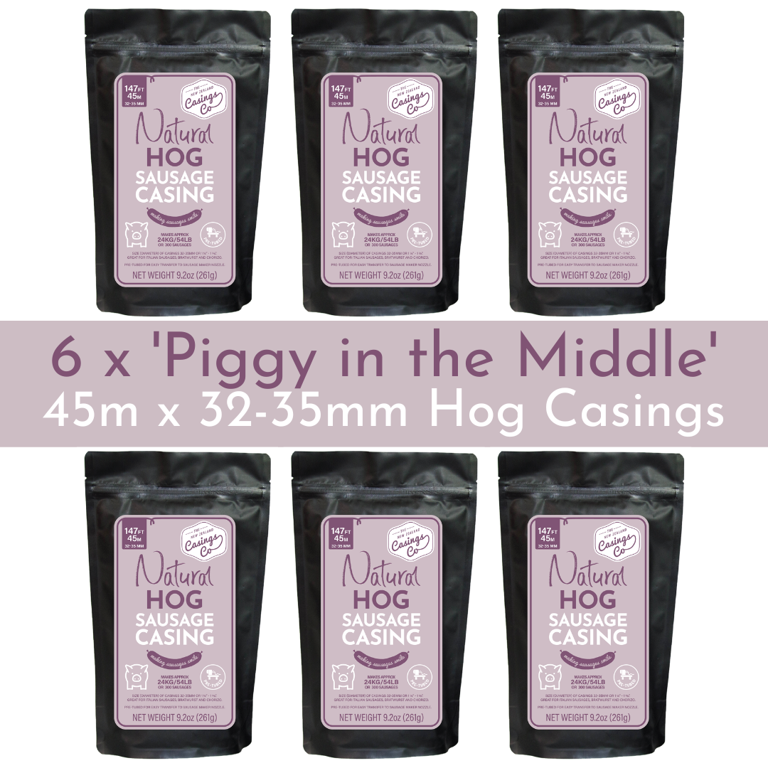 $90.18 NZD6 Pack - 'Piggy in the Middle' - Natural Hog Casings 32-35mm, 45m