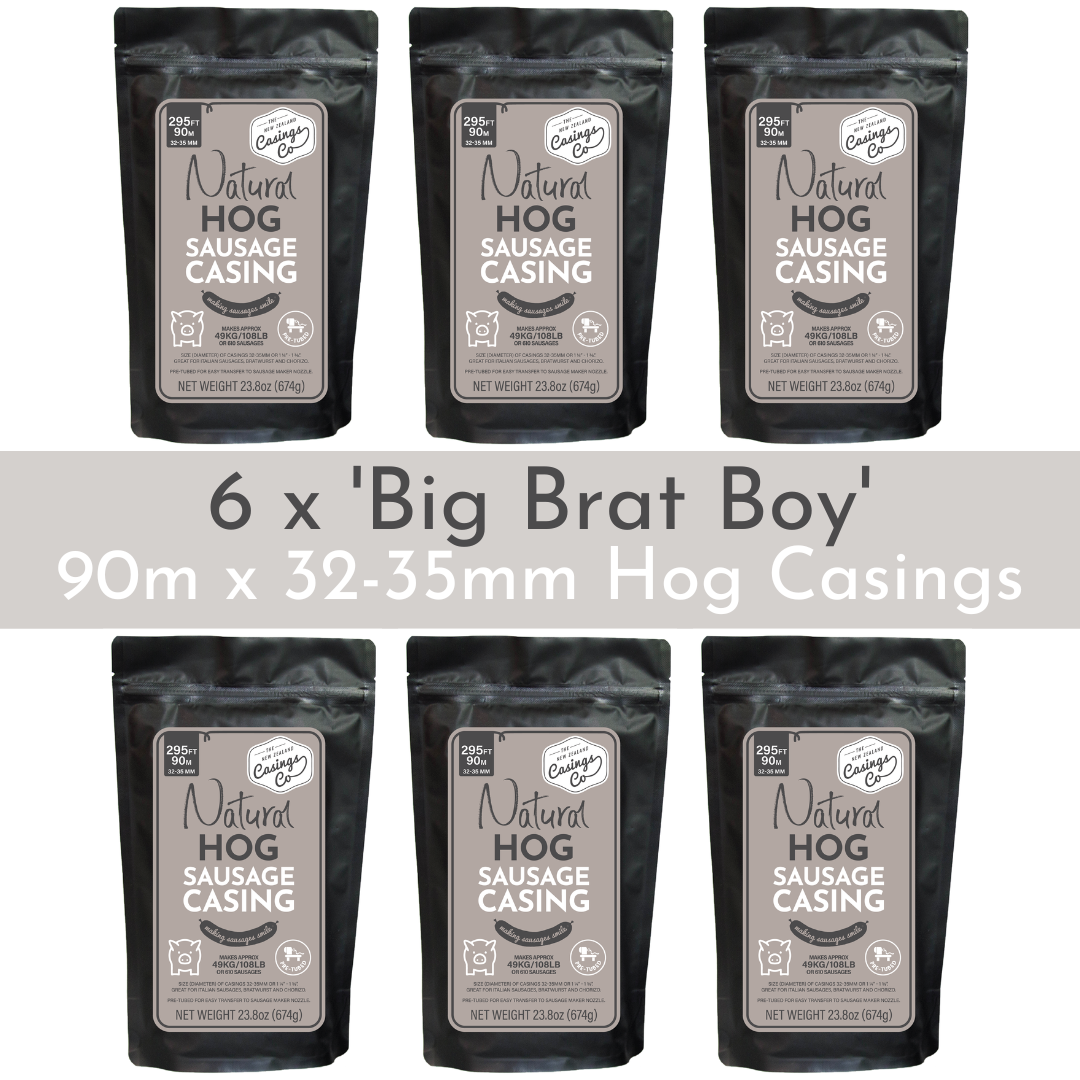 $168.00 NZD6 Pack - 'Big Brat Boy' - Natural Hog Casings 32-35mm, 90m