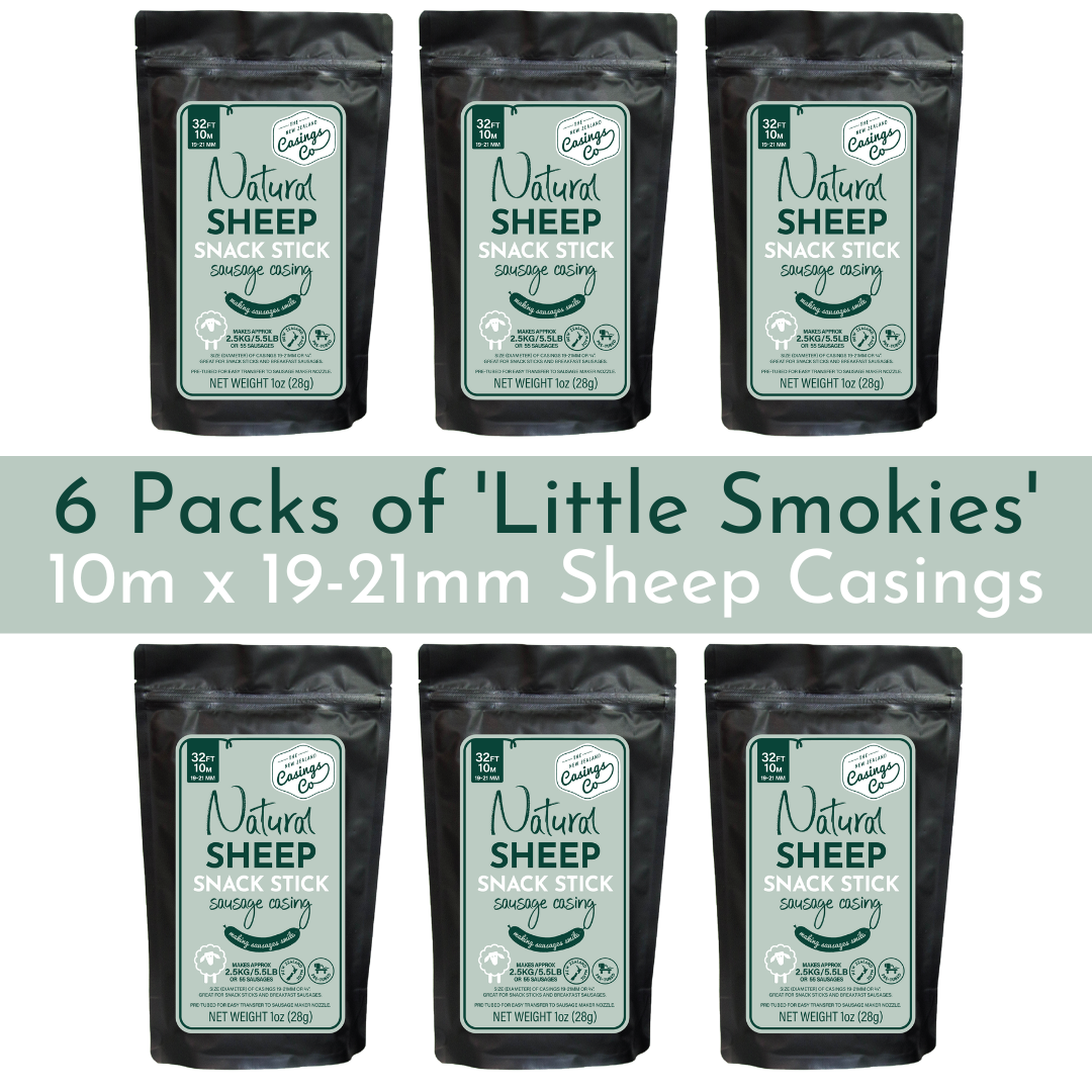 $25.00 NZD6 Pack - 'Little Smokies' Natural Sheep Casings 19-21mm, 10m.