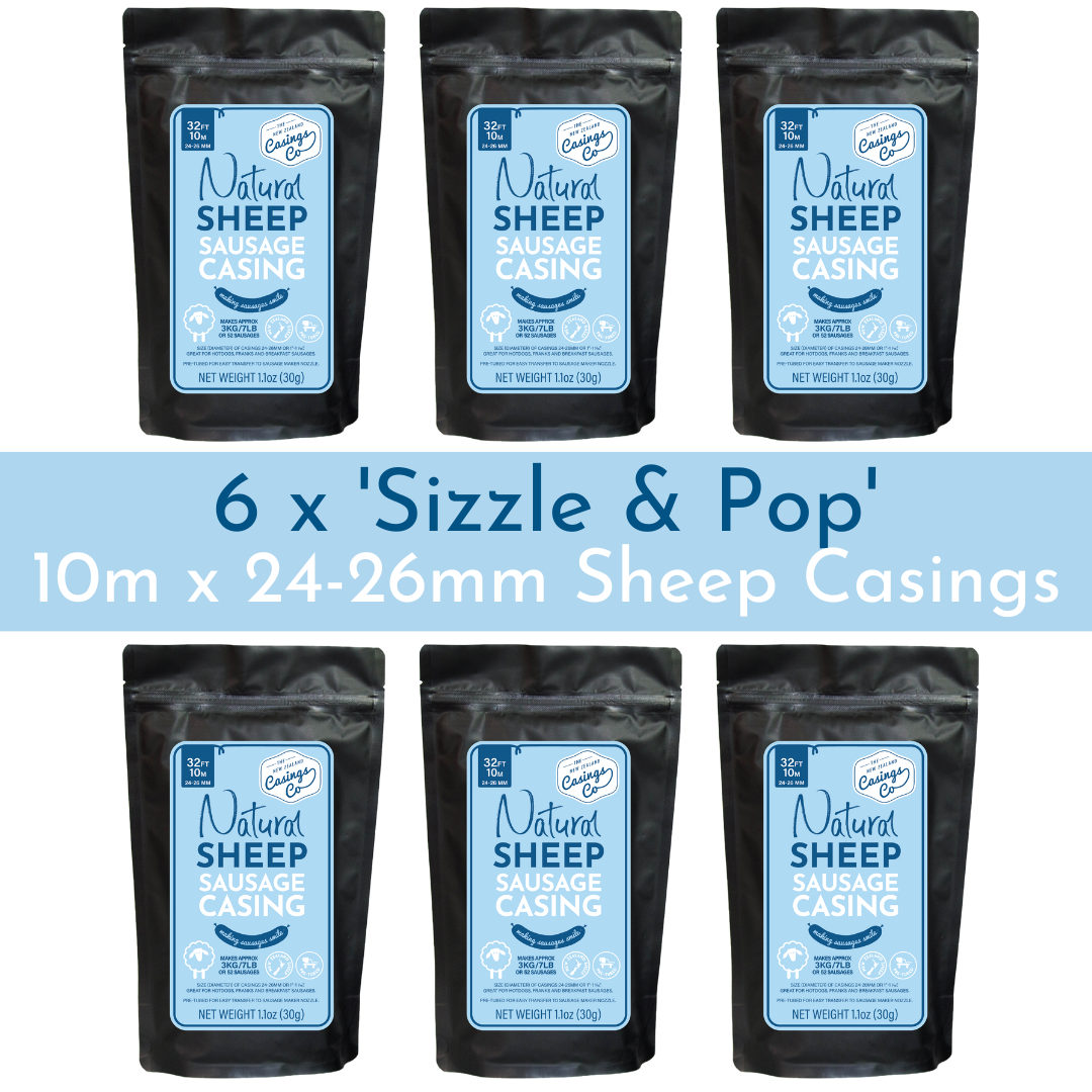 $98.00 NZD6 Pack - 'Sizzle & Pop' Natural Sheep Casings 24-26mm, 10m.