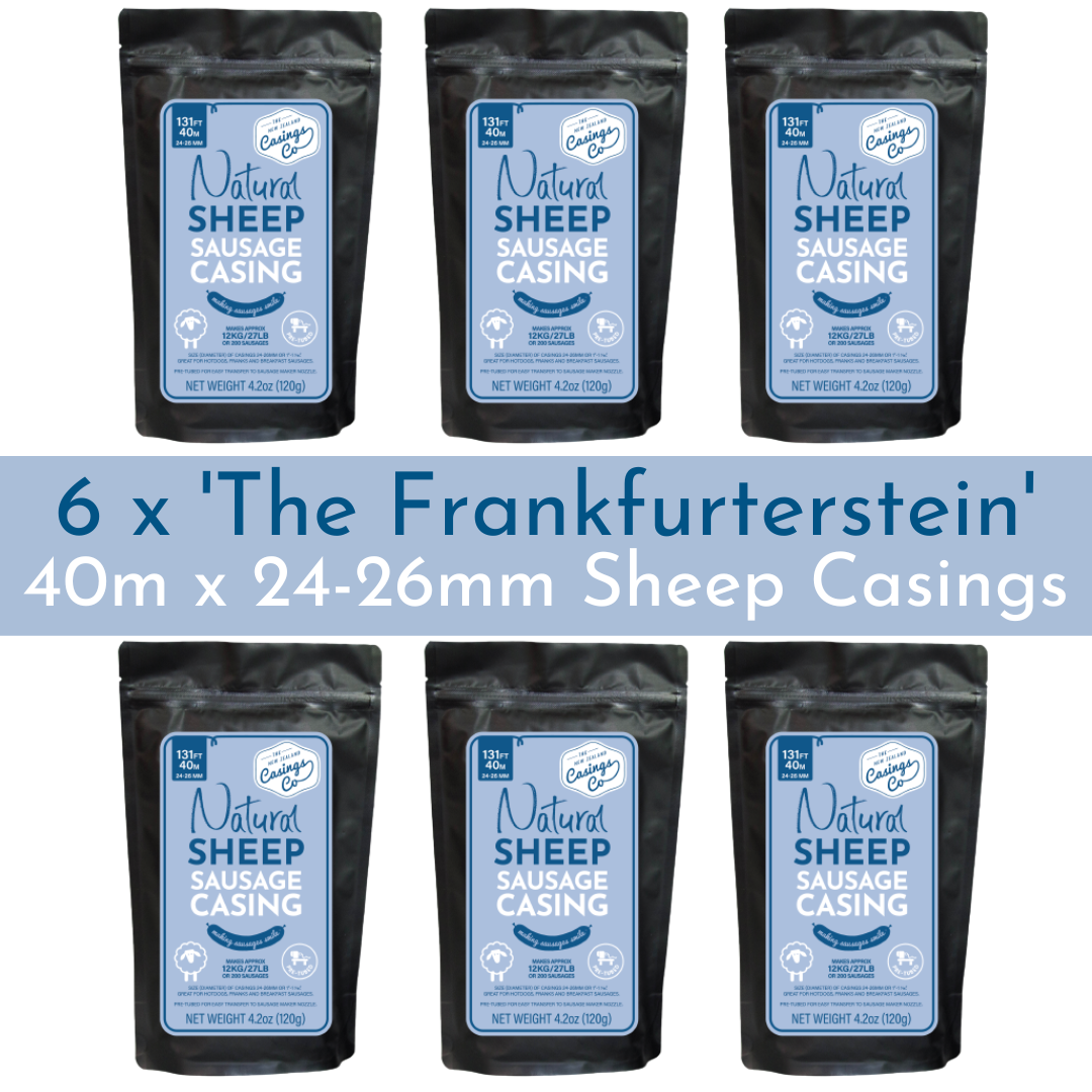Coming Soon6 Pack - 'The Frankfurterstein' Natural Sheep Casings 24-26mm, 40m.