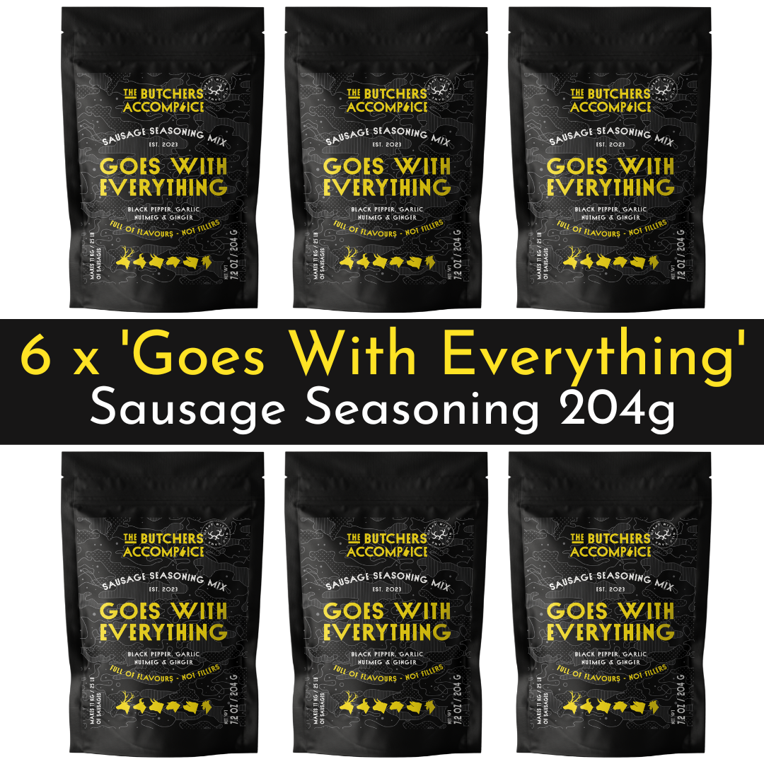 This one is for the hunter gatherers out there who like a bit more of a flavour kick, but wont scare off the kids*. Packed with garlic, paprika, sage, mustard seeds, all spice & coriander, this is a delicious sausages seasoning that goes perfectly with venison or anything else with a set of horns.